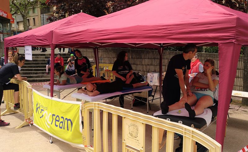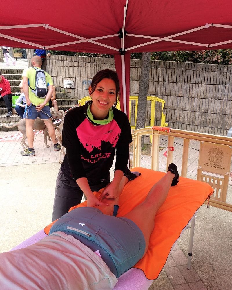 Al finalitzar la Cursa Guilleries X Trail, molts corredors van passar per la carpa de Sacalm Salut per gaudir d’un massatge post-competició.